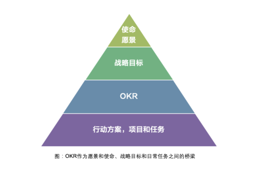 所以“O”和“KR”浓缩在一起就是“为确保达成企业目标的关键成果分解与实施”。